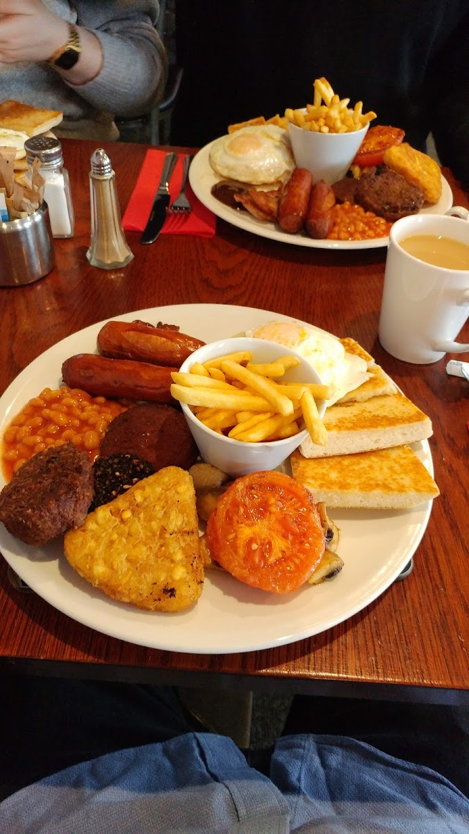 Best meal we had in Northern Ireland! The menu is pretty standard with options to fill everyone to their content! Staff are super friendly & welcoming. This was one of the very few places that offered vegetable roll with their breakfasts. My husband & son were thrilled! They each ordered the Big Sizzling Brekkie & my son didn’t leave a crumb on his plate! My husband couldn’t finish all of the carbs but made a meal out of all the protein! I had standard eggs & soda bread with chips! I would have liked an extra egg but I know for next time! Will definitely visit here next time I’m in Northern Ireland!