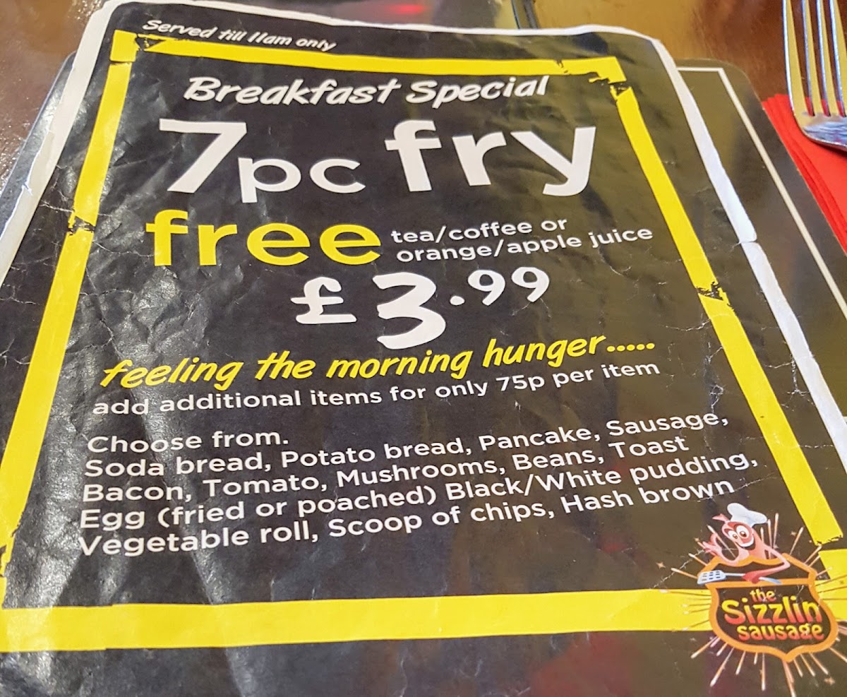 The menu at Sizzlin Sausage Diner offers a straightforward, comforting selection that feels right at home in its casual, family-friendly setting. Expect classic breakfast dishes like Full Fry and Poached Egg with Wheaten Bread alongside hearty lunchtime and evening options such as 8oz Rump Steak, Chicken Curry, and Lasagne. Light bites like Breaded Mushrooms and Toasted Sandwiches provide simple choices for any time of day.